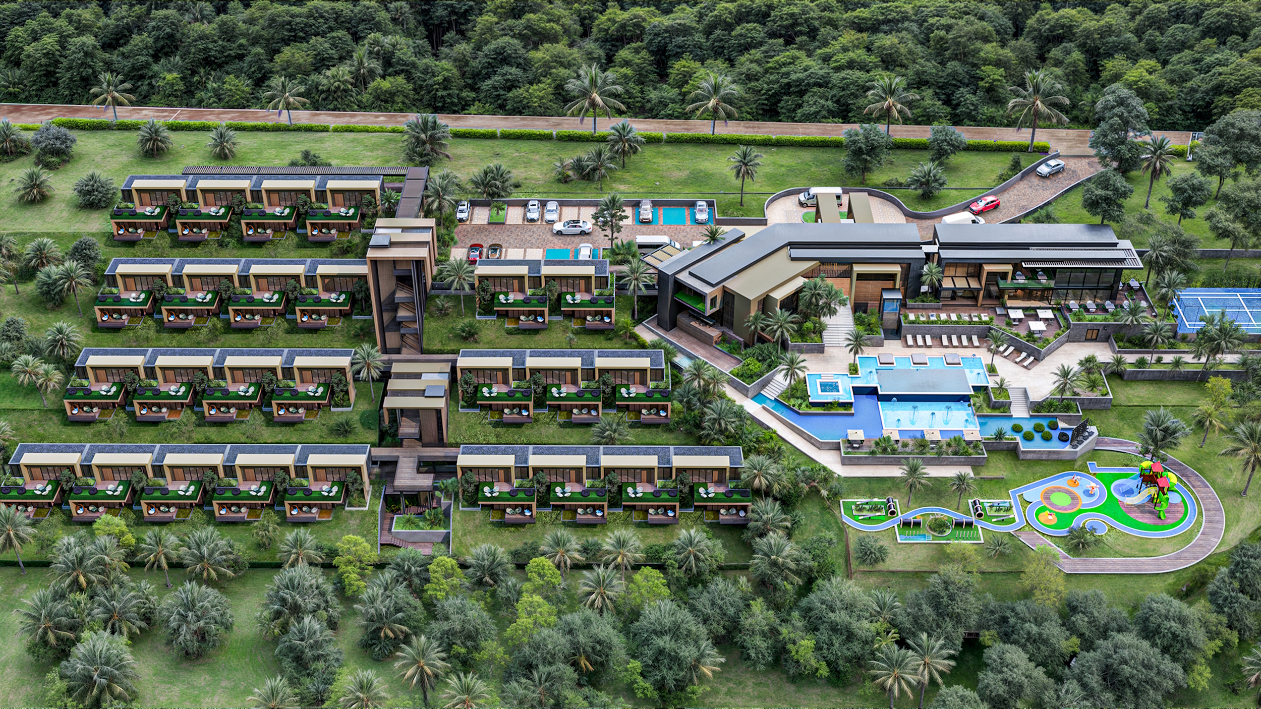 Descanso, Bienestar y Entretenimiento. Ese es el ecosistema Yarima: suites con terraza, jacuzzi y vista 180° al embalse para desconectar; un Club de Playa con acceso exclusivo para disfrutar de la playa artificial, las piscinas y los deportes náuticos; y el Lounge Flotante, un deck sobre el agua con todas las comodidades.